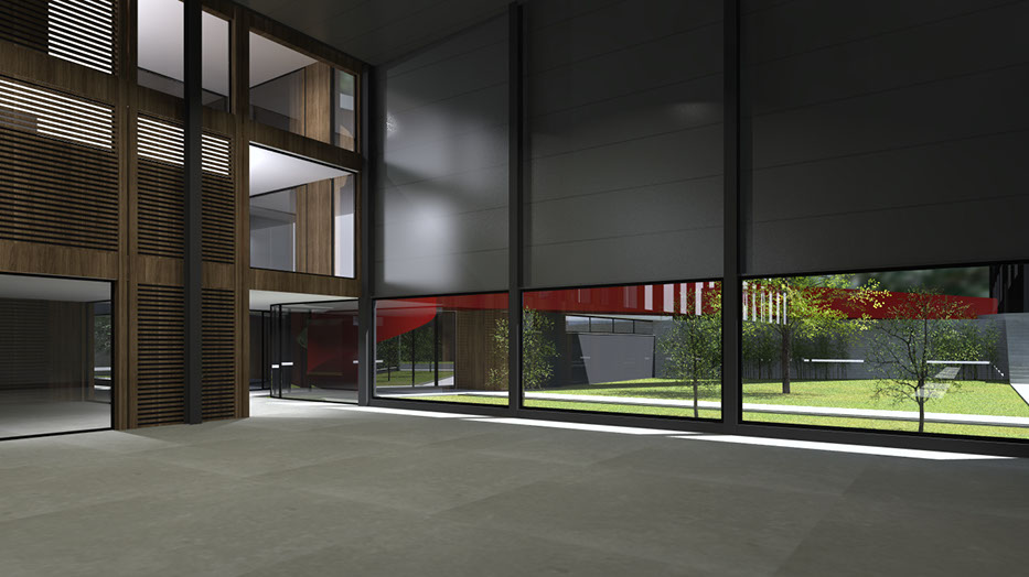 O programa do edifício prevê que os espaços dos técnicos e dos administrativos devem estar em contacto directo com as áreas de produção e estas em comunicação com os espaços verdes exteriores.